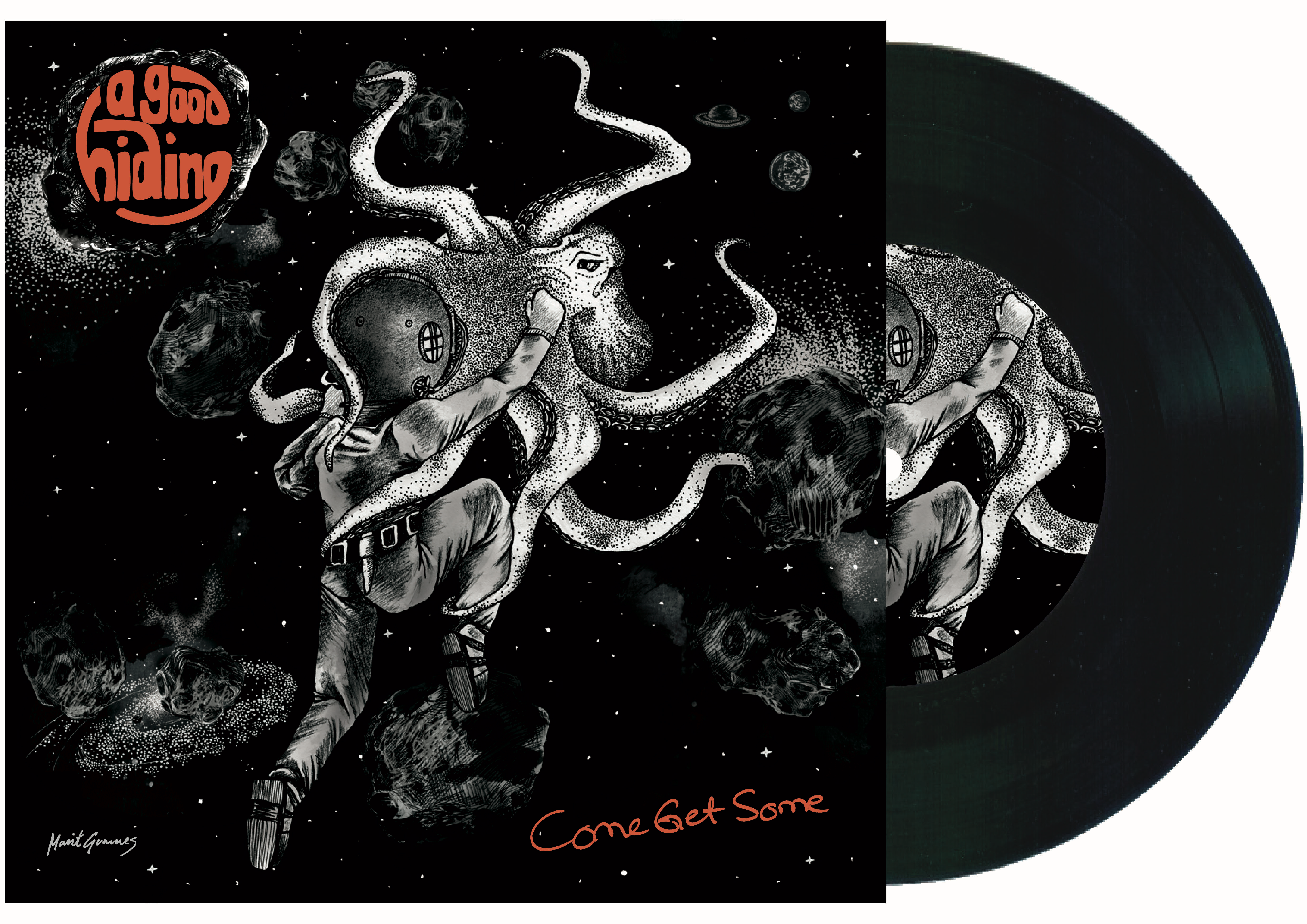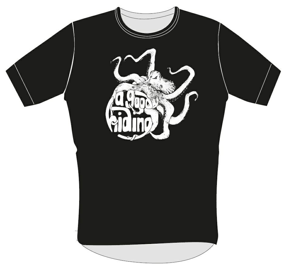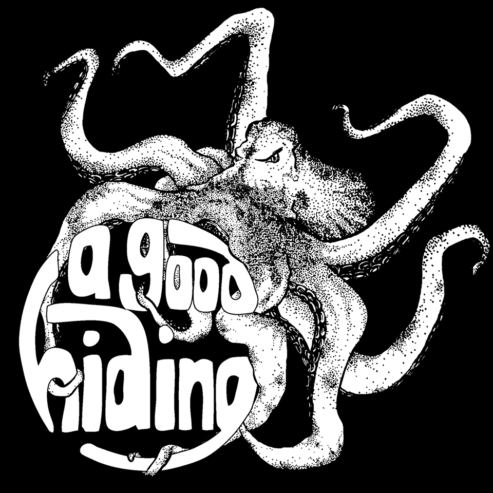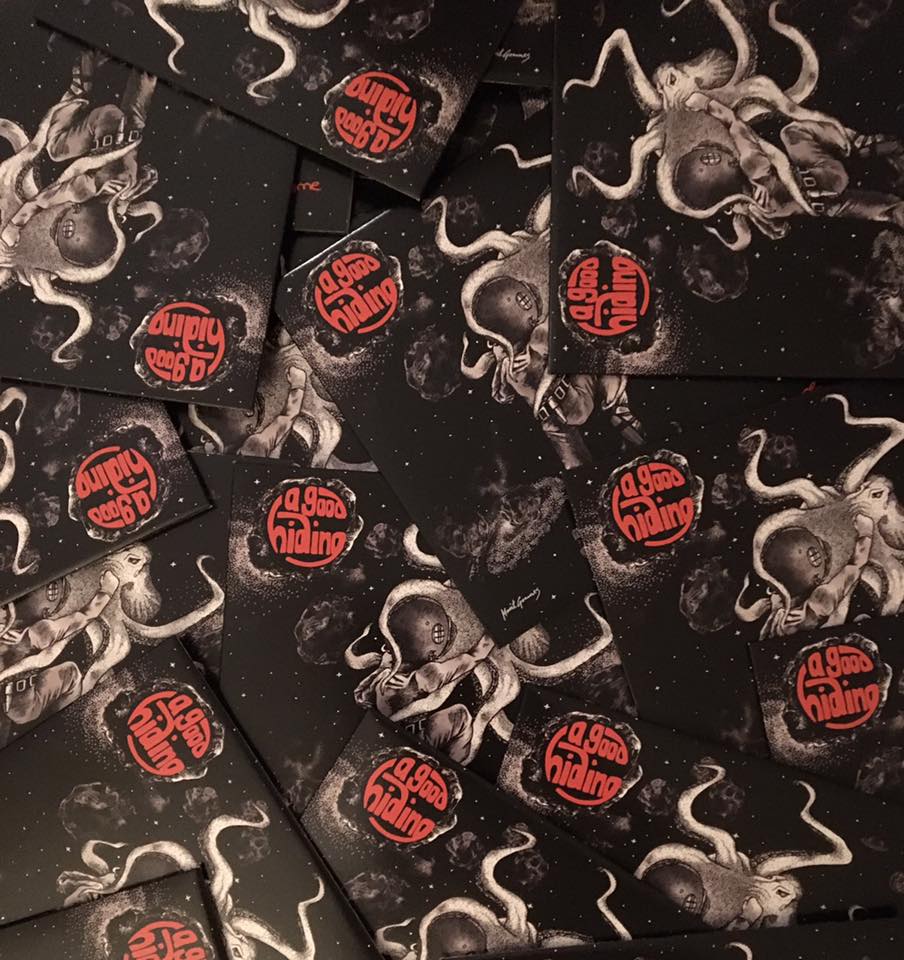 Bandet ønsket blekkspruten jeg hadde laget fra ep coveret sammen med logoen A good hiding. De ønsket motivet i sort-hvitt.