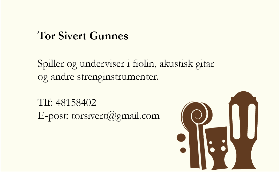 Visittkort, Tor Sivert Gunnes Grafisk design Tor Sivert Gunnes, visittkort 2014 Grafisk Design Klikk for å dele på Facebook(åpnes i en ny fane) Facebook Klikk for å dele på LinkedIn(åpnes i en ny fane) LinkedIn Klikk for å sende en lenke med e-post til en venn(åpnes i en ny fane) E-post Lik Laster inn...